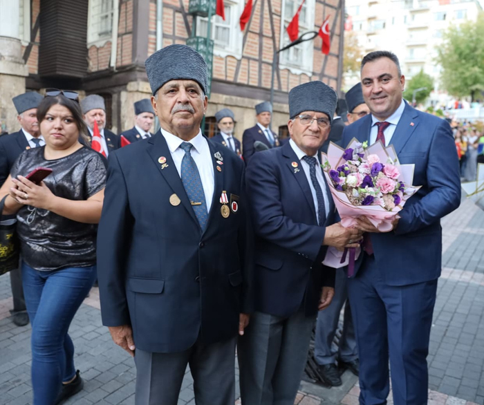 Şehrin kurtuluşunu temsili olarak canlandıran Türkiye Muharip Gaziler Derneği Bursa Şubesi üyesi gaziler, Türk bayrakları ile Tarihi Belediye Binası'nın önüne geldiğinde Bursalılar tarafından alkışlandı. İstiklal Marşı'nın okunması sırasında Tarihi Belediye Binası'ndaki Türk bayrağı, gaziler tarafından sembolik olarak asıldı. Ardından milis kuvvetleri temsilcileri, Türk bayrağını öperek Vali Yardımcısı Rıza Gençoğlu’na teslim etti. Başkanvekili Saldız ise daha sonra gazilere çiçek takdim etti.