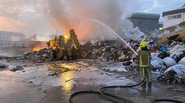 Bursa'nın İnegöl ilçesinde çöp toplama merkezinde çıkan yangın, yaklaşık 1 saat süren yoğun çalışma sonucu kontrol altına alındı.