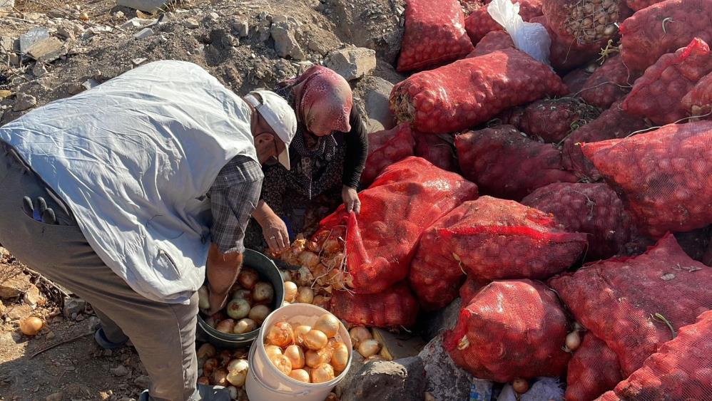 Çöpe dökülen soğanları topladılar