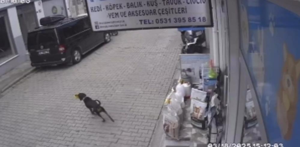 Bursa'nın İznik İlçesi’nde bir köpeğin kediyi kıskanıp dolu mama kabını alarak karşı kaldırıma geçtiği anları kameralar kaydetti.