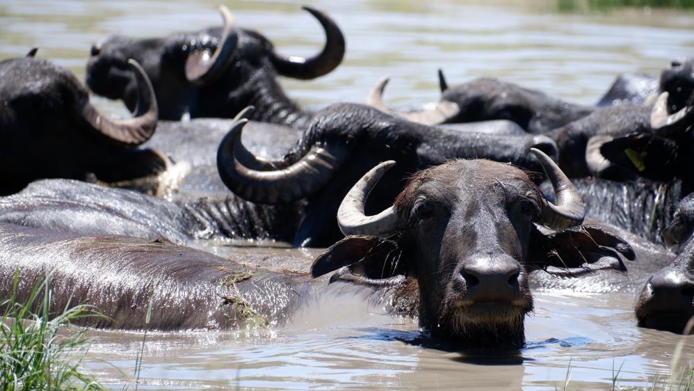 120 mandaya çobanlık yapan 8 çocuk babası Nazım Çelik (64), işini severek yaptığını anlatarak, “Her sabah köydeki mandaları meydanda topluyorum ve çayırlarda otlatıyorum. Mandaların en büyük ihtiyacı su ve su banyosu. Bu onlar için olmazsa olmaz. Su banyosunun vaktini mandalar ayarlıyor. İhtiyaçları olduğunu anlıyorum ve dere kenarına götürüyorum. Sudan ne zaman çıkacaklarına yine onlar karar veriyor. Serinlemek ve su içinde olmak onlara keyif veriyor. Hayvanların suya girmesi, çamurda yatması süt verimini artırıyor. Ancak bulunduğumuz alanda ciddi anlamda su sıkıntısı var. Yetkililerden bu anlamda destek bekliyoruz” dedi.