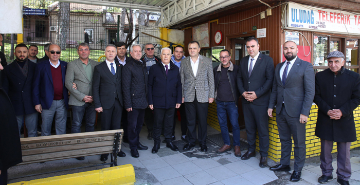 Başkan Mustafa Bozbey, daha sonra Adile Naşit Kültür Merkezi’nde Yıldırım ilçesindeki muhtarlarla bir araya geldi. Yıldırım Muhtarlar Derneği Başkan Muhsin Sak'ın da yer aldığı buluşmada muhtarların taleplerini tek tek dinleyen Başkan Bozbey, her bir mahalleye eşit ve adil hizmet anlayışını sürdüreceklerini ifade etti. ‘Başkan Bozbey Burada’ programı kapsamında Uludağ Taksi Durağı'na da uğrayarak taksicilerle buluşan Başkan Mustafa Bozbey, esnafın sorunlarını ve taleplerini dinleyerek not aldı.