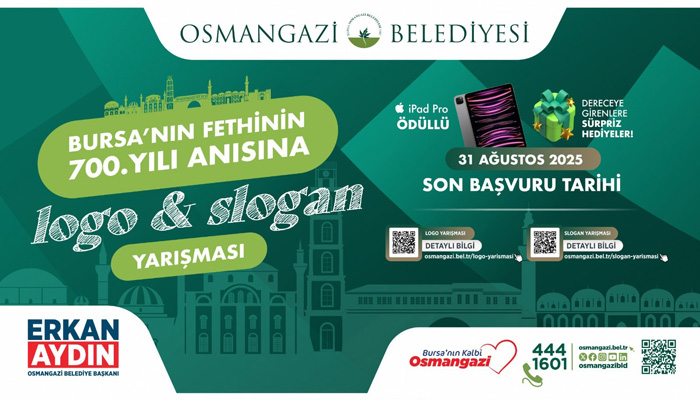 Bursa’nın fethinin 700’üncü yılı anısına düzenlenen logo ve slogan yarışması için başvurular başladı. İki kategori için son başvuru tarihi 31 Ağustos Pazar olarak belirlendi. Dereceye girenlere sürpriz ödüllerin verileceği yarışmada, logo kategorisinin birincisine iPad Pro hediye edilecek.