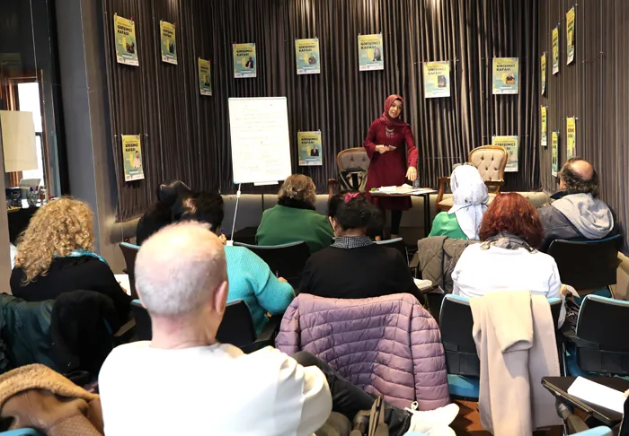 Şiir Atölyesi’nde eğitimlerin 3 hafta sürdüğünü ifade eden Kültür Bakanlığı Halk Şairi ve Yazar Hatice Türkmen Yurtseven, “Şiir Atölyesi’nde ilk hafta şiirde kafiye örgüsünü nerede arayıp nerede bulacağımızı anlattık. Son şiirimizde serbest şiir üzerine yol aldık. Şiirin 6 dalı vardır, her dalın açılımını kursiyerlere öğrettik. Son dersimize katılan şair adayları öğrendikleri bilgilerle kurallara uygun birer dörtlük yazıp geldi. Bizde şiir yazmayı kurallarına uygun öğrenip öğrenmediklerinin analizini yaptık. Kendi altyapısında yazdıkları şiirin içeriğinin derinliğini, hece örgüsü, kafiye ve redifin özelliklerini öğrendiler buradaki kursa katılanlar öğrendikleri bilgilerle bundan sonra yazacakları şiirlere daha bir anlam katarak yazacaklarını inanıyorum.” şeklinde konuştu.
