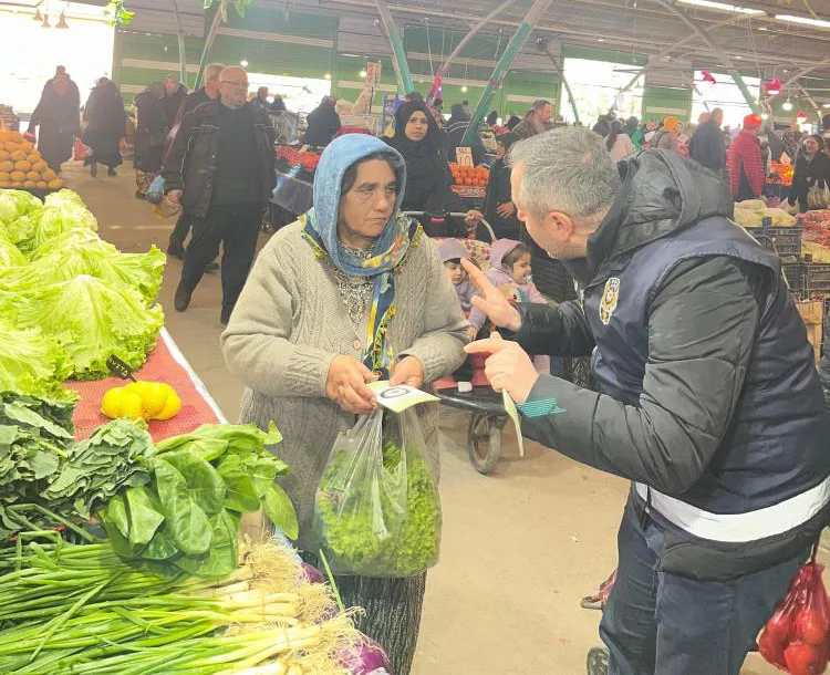 İlçe halkının yoğun olarak bulunduğu pazar yerinde alışveriş yapan vatandaşlar ve esnafla tek tek görüşen ekipler, dolandırıcılık yöntemleri hakkında uyarılarda bulundu. Çalışma kapsamında vatandaşlara 'dolandırıcılık' konulu bilgilendirici broşürler de dağıtıldı.