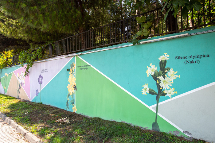 Demirtaşpaşa Köprülü Kavşağı altındaki 570 metrekarelik alan üzerine orman siluetini yansıtan Büyükşehir Belediyesi ressamları, sadece Uludağ’da yetişen endemik bitkileri duvarlara büyük titizlikle resmetti. Daha önce Sırameşeler bölgesindeki duvarlara uygulanan benzer çalışmayla bütünlük sağlayan bitki motifleri, Bursa’nın simgesi Uludağ’ı şehir merkezine taşımış oldu.