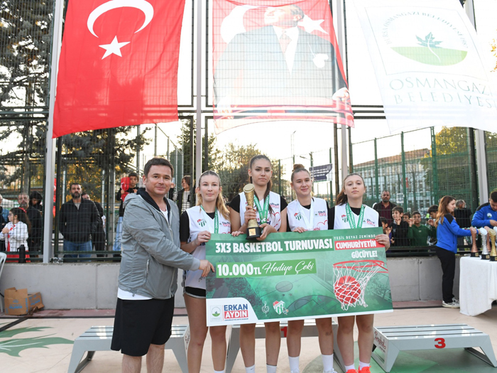 Cumhuriyetin 102’inci yılı etkinlikleri kapsamında Soğukkuyu Basketbol Sahası’nda düzenlenen 29 Ekim Cumhuriyet Bayramı 3x3 Basketbol Turnuvası, nefes kesen mücadelelere sahne oldu. Turnuvaya Bursa, İstanbul, Yalova, Çanakkale ve yurt dışından, 27’si erkek 3’ü kadın olmak üzere toplam 30 takım katıldı. Eleme usulü yapılan maçlar erkekler ve bayanlar olmak üzere 14-18, 19-40 yaş kategorilerinde düzenlendi. Turnuvada tüm rakiplerini eleyerek kendi kategorilerinde birinci olan takımlara kupa, madalya ve ödülleri, Osmangazi Belediye Başkanı Erkan Aydın ile protokol üyeleri tarafından takdim edildi.