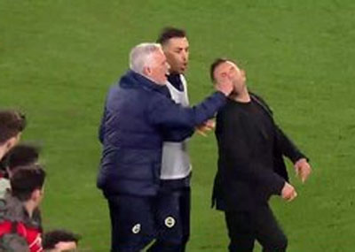 Derbiyi kaybeden Jose Mourinho, maçın ardından Okan Buruk'a fiziksel saldırıda bulundu. Portekizli teknik adam Buruk'un burnunu sıktı. Yaşananların ardından Buruk yere yığılırken saha bir anda karıştı.