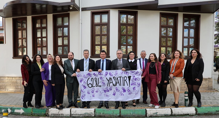 25 Kasım’ın Kadına Yönelik Şiddete Karşı Uluslararası Mücadele Günü olduğunu ifade eden Osmangazi Belediye Başkanı Erkan Aydın, “Kadına yönelik şiddet konusunda hemen hemen her gün televizyon ve gazetelerde bir kadın cinayetiyle güne başlıyoruz. Bu durum artık kabul edilemez bir noktaya geldi. Toplumun sosyoekonomik yapısındaki bozulma ve ekonomik sıkıntıların derinleşmesi, psikolojik yıpranmayı da artırıyor. İstanbul Sözleşmesi’nden çıkmamızın da bu olumsuz tabloyu tetiklediğini düşünüyoruz. Bu hafta yapılacak üç günlük kurultayımızda önemli kararlar alınacak. İktidara geldiğimizde atacağımız ilk adımlardan biri İstanbul Sözleşmesi’ni yeniden yürürlüğe koymak olacak. Kadınlar bugün yalnızca bir yasayla değil, uluslararası koruma mekanizmalarıyla da güvence altına alınmalıdır. Bugün imzaladığımız bu protokolle umarım şiddet engellenir ve mağduriyetler azalır. Osmangazi Belediyesi olarak elimizden gelen desteği vermeye devam edeceğiz. Bursa Barosu’yla iş birliğimizi kararlılıkla sürdüreceğiz” dedi.