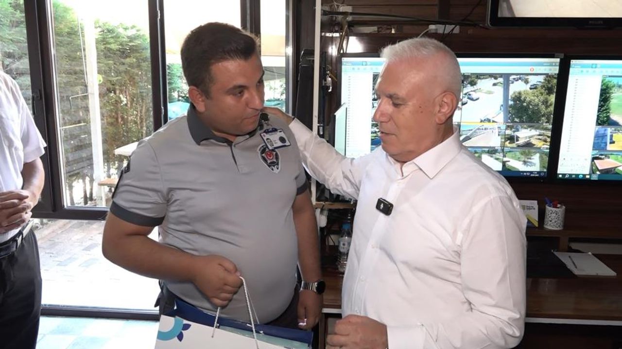 Bursa Büyükşehir Belediyesi Başkanı Mustafa Bozbey de, hiç düşünmeden suya girerek 1,5 yaşındaki çocuğu boğulmaktan kurtaran güvenlik personelini ziyaret etti. 13 yıldır güvenlik personeli olarak görev yapan Furkan Mercan'a çeşitli hediyeler takdim ederek ödüllendiren Bursa Büyükşehir Belediye Başkanı Mustafa Bozbey, "Aileleri de burada uyarmak gerekiyor. Her zaman bizlerin çok dikkatli olması gerekiyor. Sürekli suyun kenarındaki kişileri uyaralım. 1,5 yaşında bir canı kurtardın. Sizlerin emeği inanılmaz derece fazla olduğunu gördük. Allah'tan o an oradaydınız. Sizlerle gurur duyuyoruz. Hayatın boyunca unutamayacağın en büyük mutluluğun olacaktır" dedi.