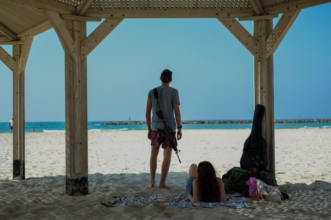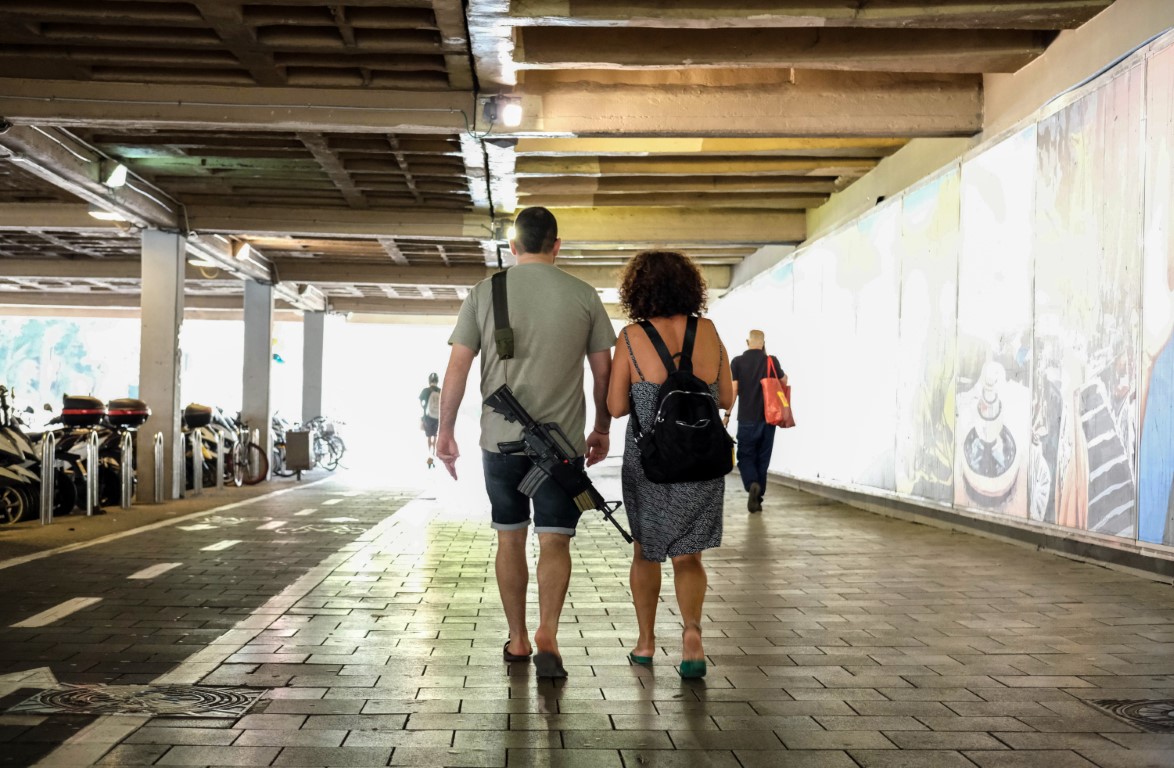 Özellikle başkent Tel Aviv’de her cadde ve sokakta uzun namlulu silah taşıyan sivilleri görmek mümkün. Yahudilerin günlük yaşantılarında, kafelerde otururken veya spor yaparken taşıdığı silahlar; savaş manzaralarının ve huzursuzluğun sokaklara da yansıdığını gözler önüne seriyor. Tel Aviv sakinleri bisiklet sürerken, sahilde otururken, köpek gezdirirken bebek arabasıyla dahi gezerken ve spor yaparken uzun  namlulu silahlar taşıyor.