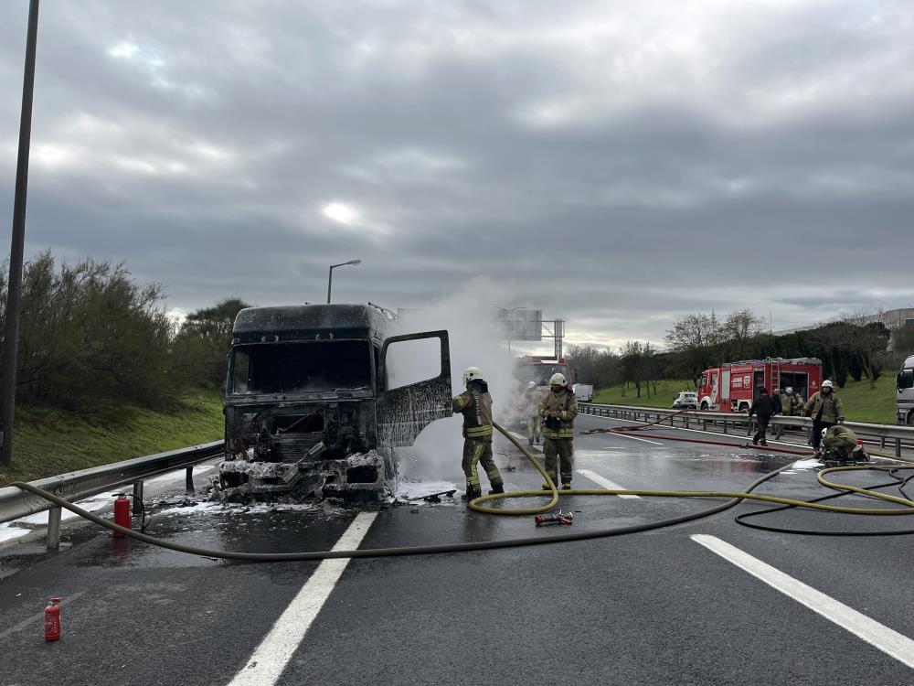 Olay, İstanbul Tem Otoyolu Çatalca mevkiinde meydana geldi. Edinilen bilgilere göre, Silivri’den Çatalca istikametine seyir halinde olan Adem Yılmaz kontrolündeki 41 F 9458 plakalı tutkal yüklü tanker tekeri patlayınca bir anda alev aldı. Sürücü Yılmaz alev alan aracı sağ şeride çekerek inip uzaklaştı. Yapılan ihbar üzerine çok sayıda itfaiye, sağlık ve jandarma ekibi sevk edildi. Olay yerine gelen İtfaiye ekipleri yangını söndürürken, Tem otoyolu Silivri’den Çatalca istikametine bir süre trafiğe kapandı. Olayda yaralanan olmazken tanker kullanılamaz hale geldi. Yapılan çalışmalar sonrasında yol trafiğe tekrar açıldı.