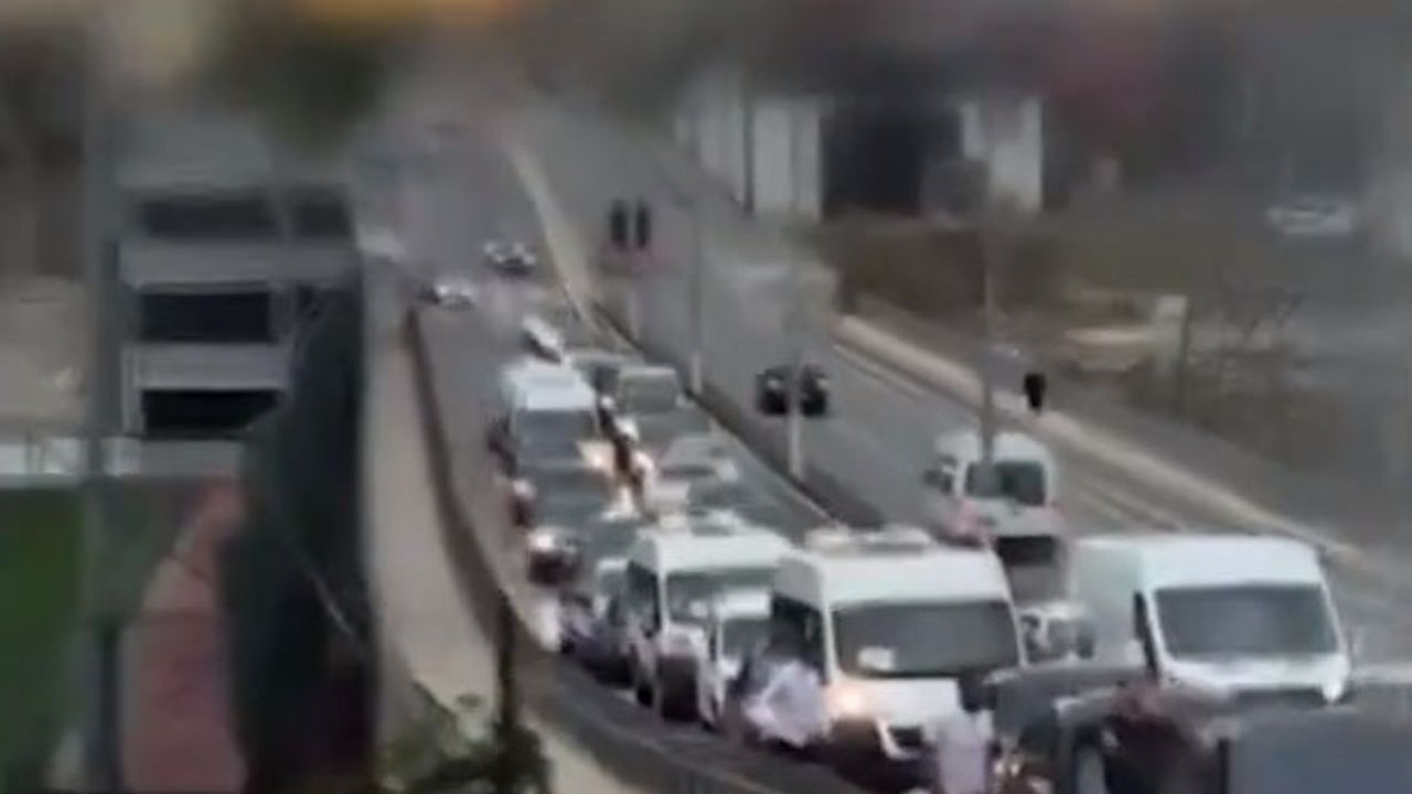 Bir çiftin en mutlu günü ama trafik kuralları hiçe sayılmış. Uzun araç kuyrukları, yakılan meşaleler, gürültü…