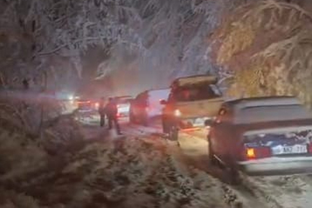 Termometrelerin eksi 12 dereceye kadar gerilediği Uludağ’a kara yoluyla çıkmak isteyenlere zincir takma mecburiyeti getirildi. Ekipler, zirveye zincirsiz çıkmak isteyen araçları Kireçocakları mevkiinden geri çeviriyorlar.
