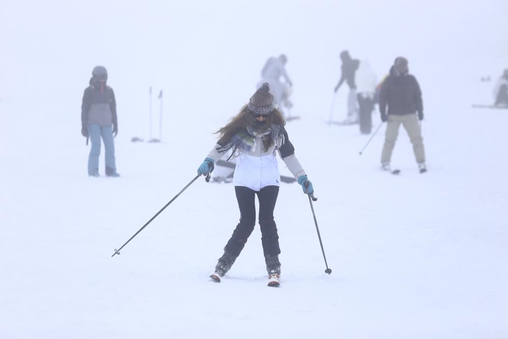 Zirvedeki bazı otellerin açık olmasından dolayı kayak severler pistlerde gönüllerince kayak yapma fırsatı buldu.