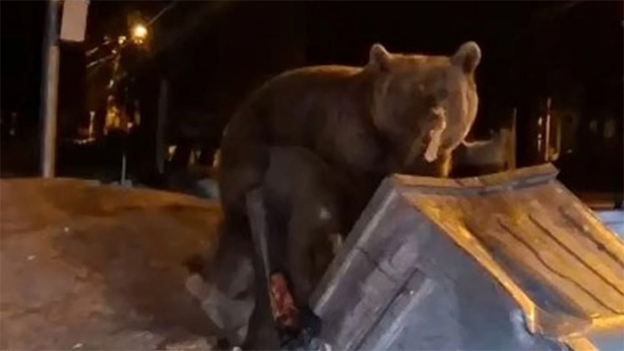 Sarıalan ve Çobankaya'daki kamp alanlarında çöp konteynerlerini kolayca deviren ayılar, karınlarını doyuruyorlar.