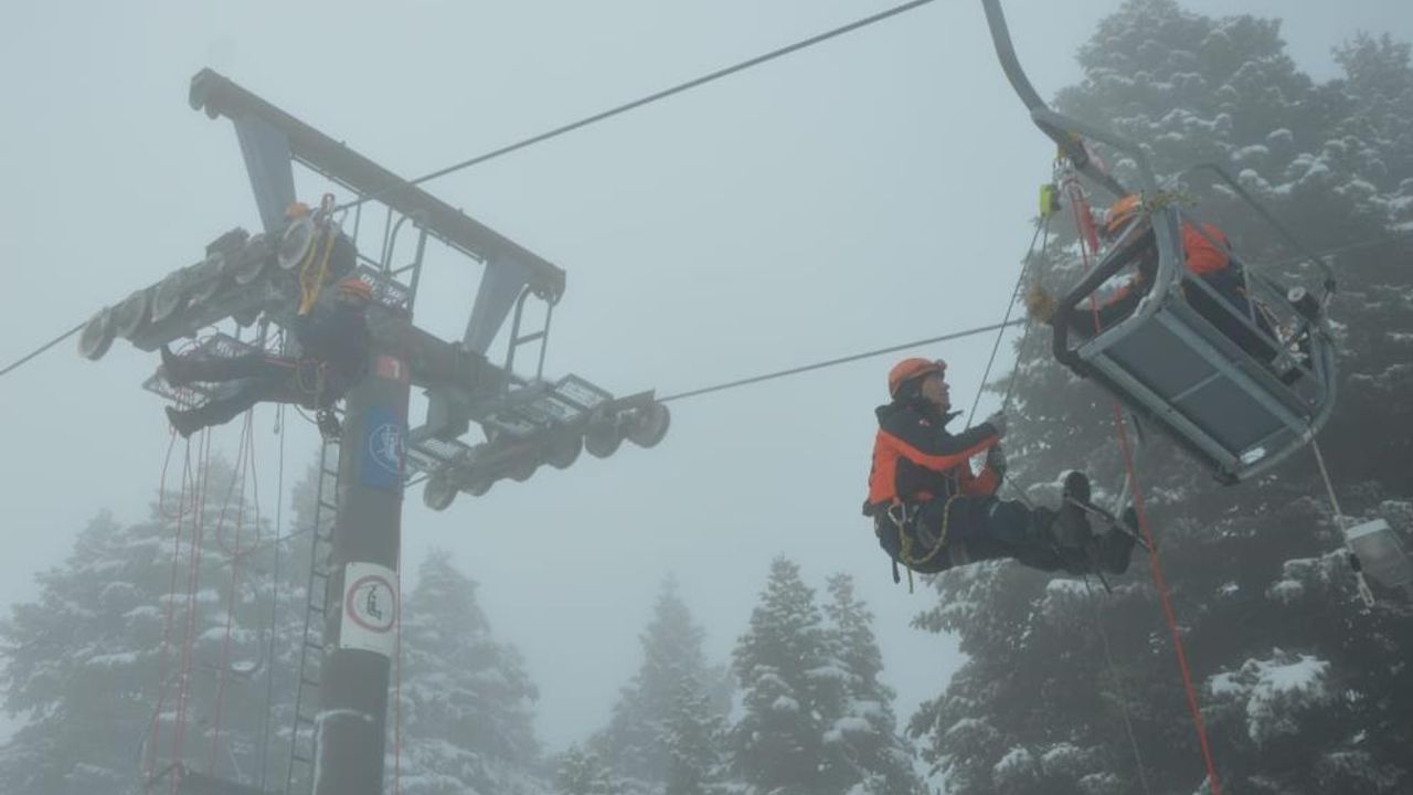 Bursa'da AFAD ve JAK ekipleri, Uludağ'da gerçekleştirdikleri kurtarma tatbikatında yürekleri ağza getirdi. Zirvenin karla kaplı bölgesinde 35 AFAD ve 2 tim JAK ekibi, duran telesiyejdeki kişileri sağlıklı bir şekilde yere indirmek için akrobatları aratmayacak şekilde tellerde ilerledi. Mahsur kalanlara ulaşan ekipler, onları sağlıklı bir şekilde indirmek için gereken bütün önlemleri aldı.