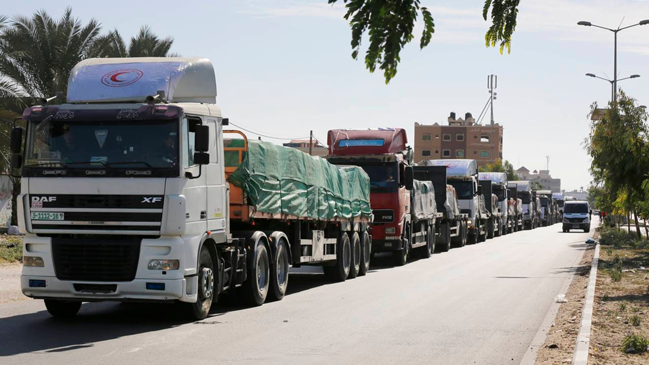 Gazze Şeridi ile Mısır arasındaki Refah Sınır Kapısı'nın Medya Direktörü Vail Ebu Muhsin, yaptığı açıklamada, bugün insanı yardım taşıyan 55 tırın Gazze Şeridi'ne giriş yaptığını söyledi. Filistin Kızılayından yapılan yazılı açıklamada ise insani yardım taşıyan 50 tırın Refah Sınır Kapısında Mısır Kızılayından teslim alındığı belirtildi.